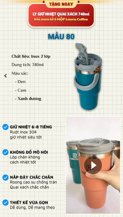 Combo 6 Hộp Cà phê Tặng 1 Ly giữ nhiệt quai xách 740ml